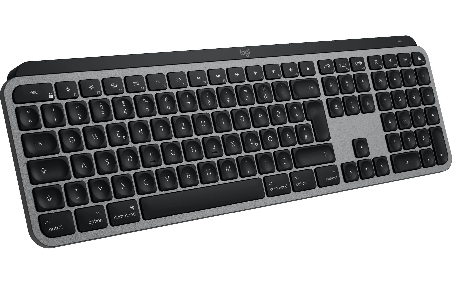 Tastatur Typ: Business, Tastaturlayout: QWERTZ (CH), Tastatur Features: Beleuchtung, Easy Switch, Hotkeys, Medientasten, Ziffernblock, Keyboard Tasten: Klassisch (Knöpfe), Detailfarbe: Grau, Schwarz, Ziffernblock: Ja Logitech MX Keys S for Mac space grey