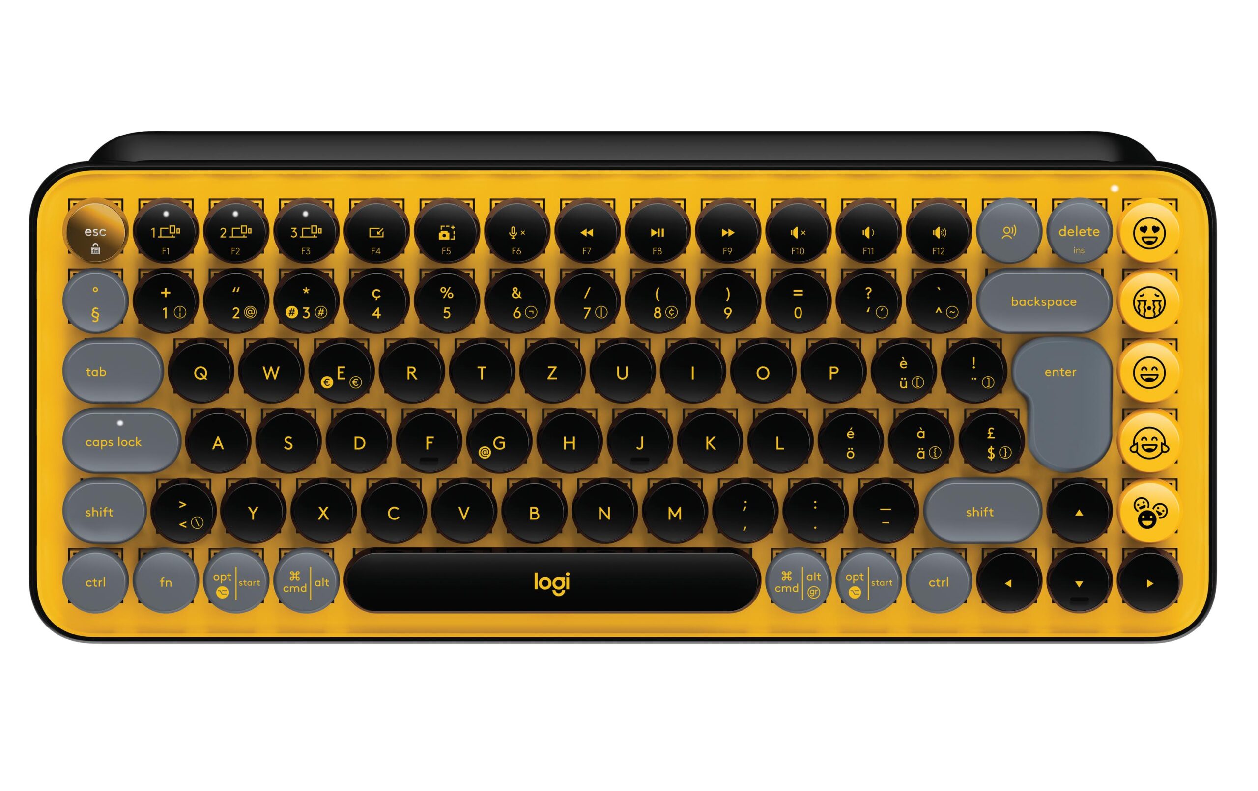 Tastatur Typ: Mobile, Tastaturlayout: QWERTZ (CH), Tastatur Features: Hotkeys, Medientasten, Keyboard Tasten: Mechanisch, Detailfarbe: Gelb, Schwarz, Ziffernblock: Nein Logitech POP Keys with Emoji Keys blast yellow
