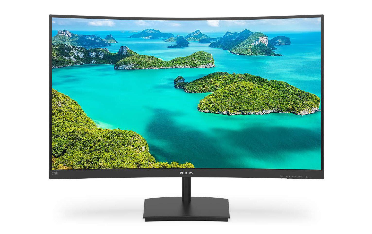 Bildschirmdiagonale: 27 , Auflösung: 1920 x 1080 (Full HD), Video-Anschlüsse: HDMI, VGA, Anwendungsbereich: Consumer, Ergonomie: Neigbar, Curved: Ja Philips 271E1SCA 27, Curved, 1920×1080, VA VGA, HDMI, Speaker